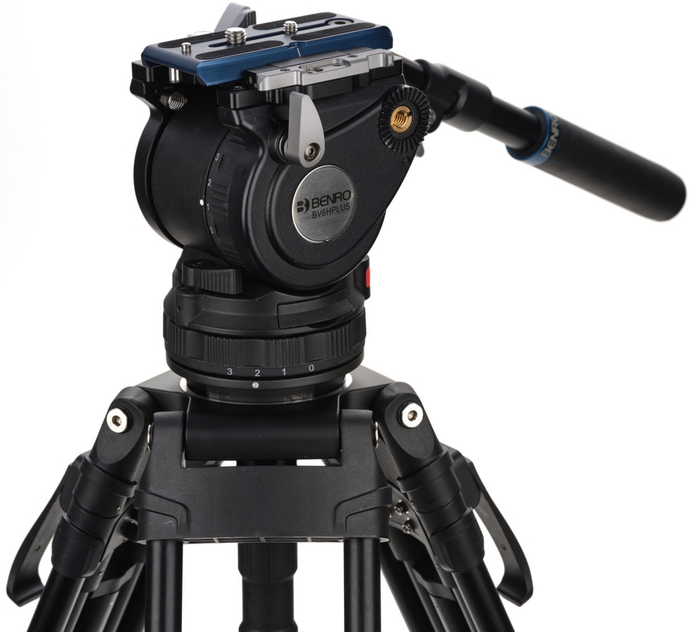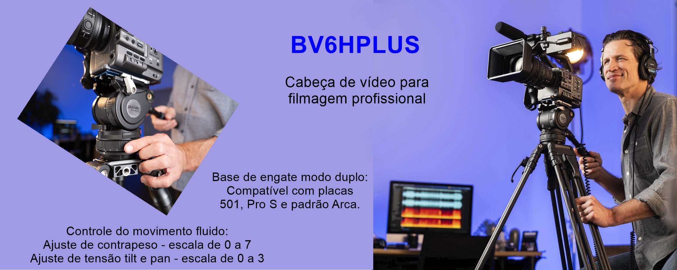 A cabeça do BV6PLUS possui um sistema de contrapeso de 8 níveis (escala 0-7) para selecionar a  melhor configuração. Os controles de pan e tilt de 4 ajustes de tensão garantem maior precisão sobre os movimentos fluidos.