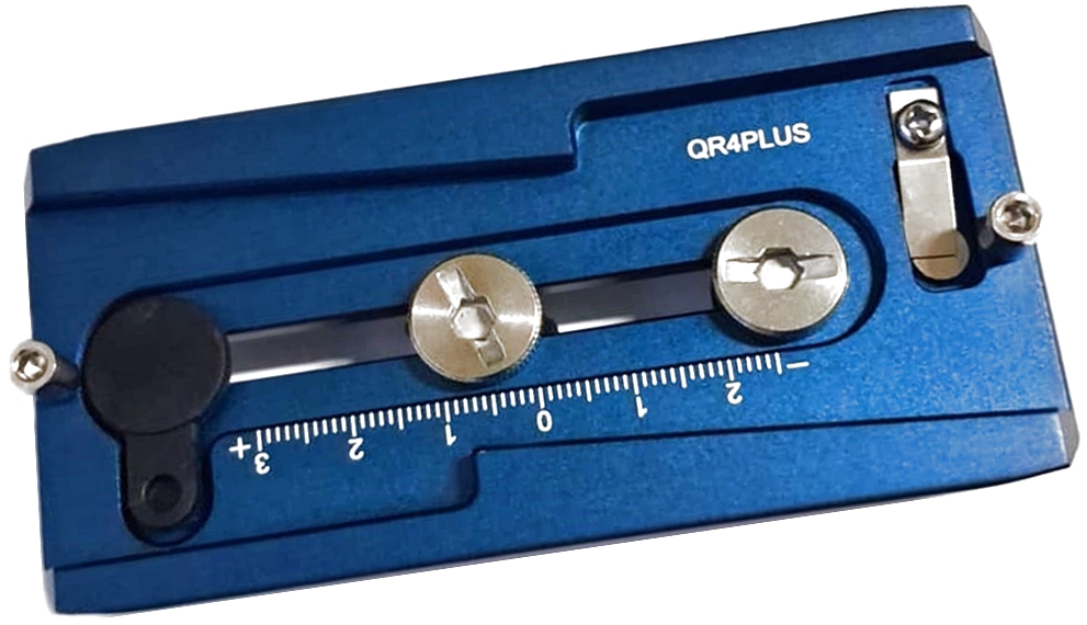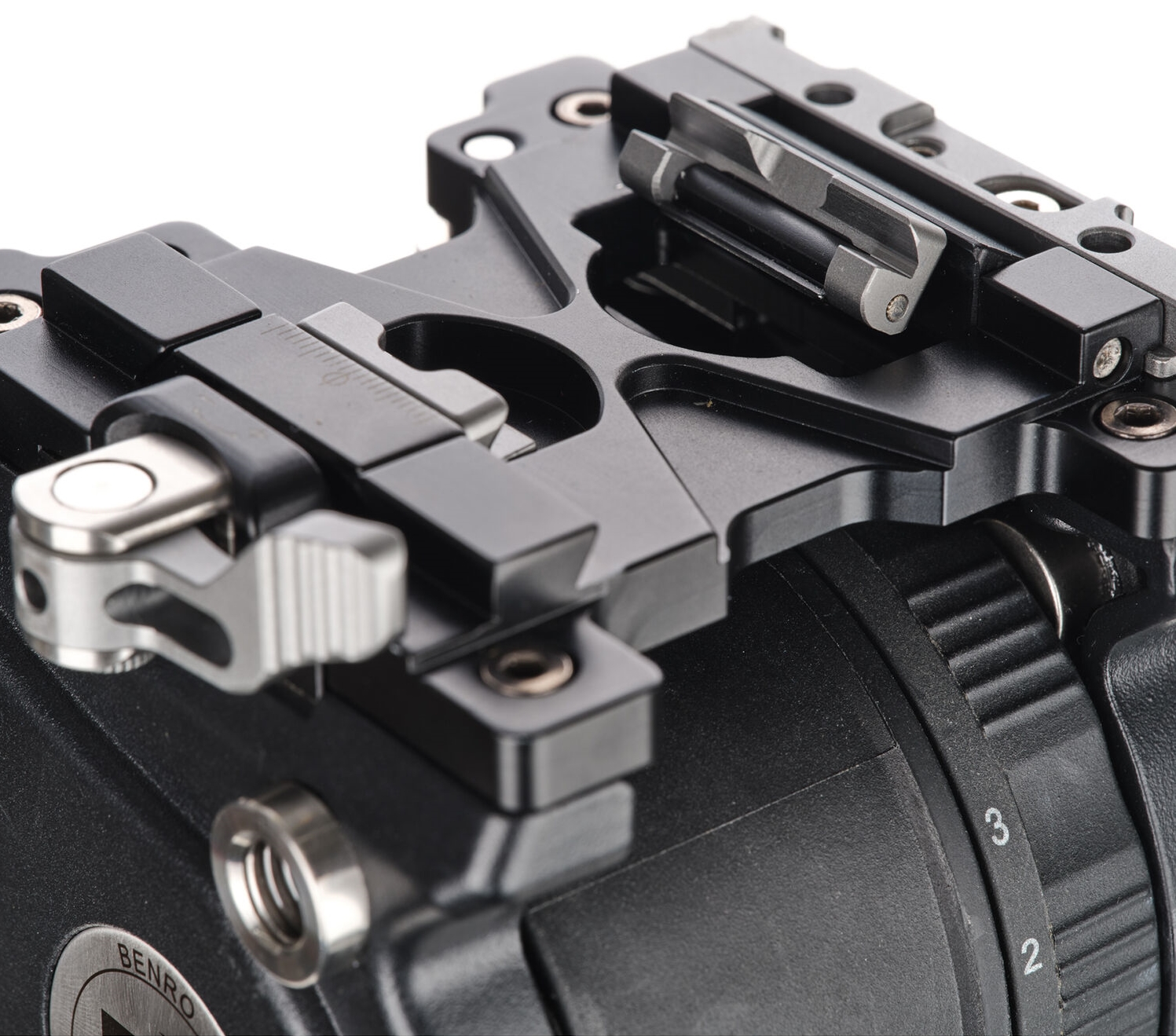 A alavanca deve ser girada para frente (+) para destravar ao engate e deslizar a placa para melhor posicionamento da câmera.