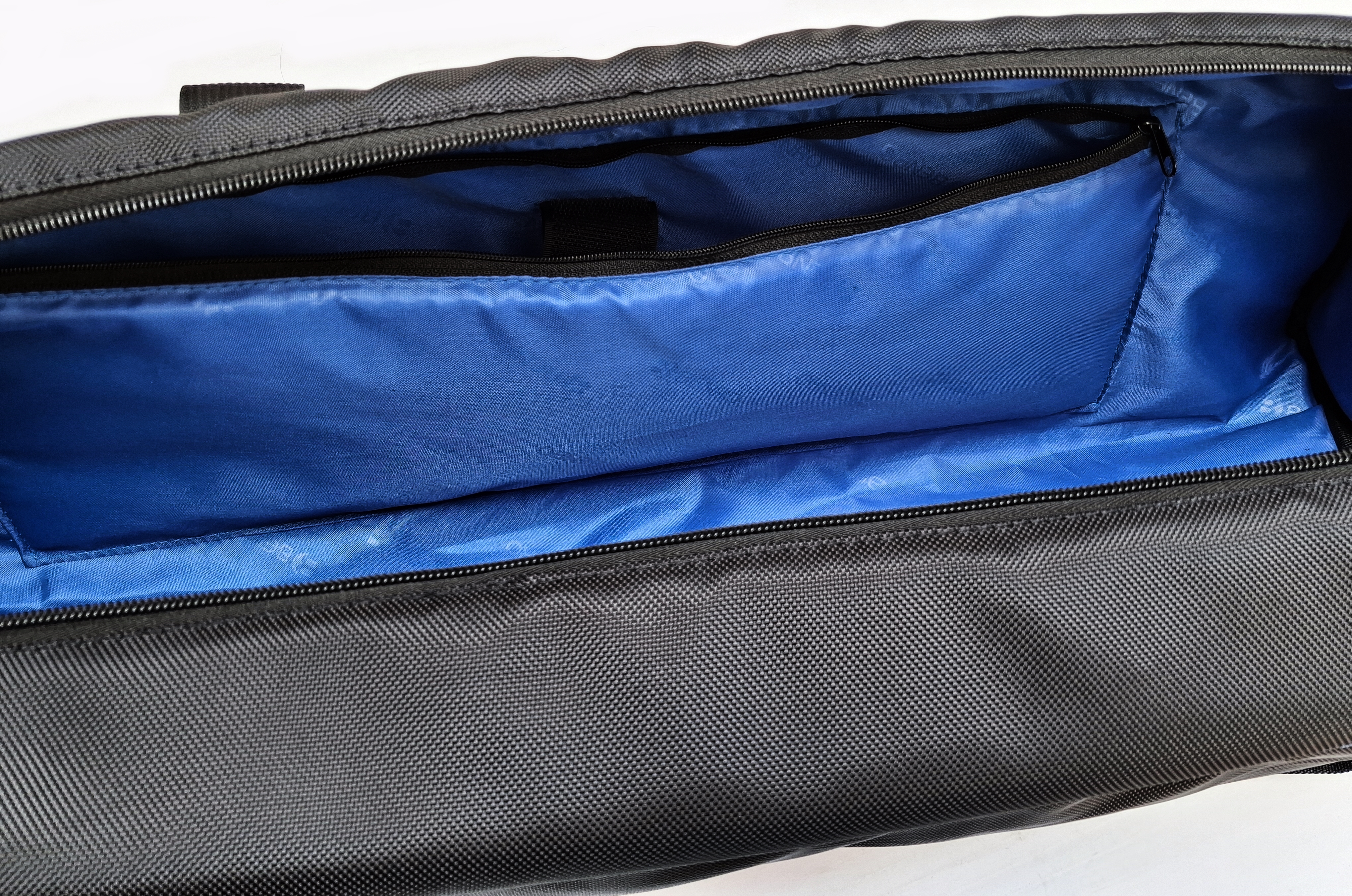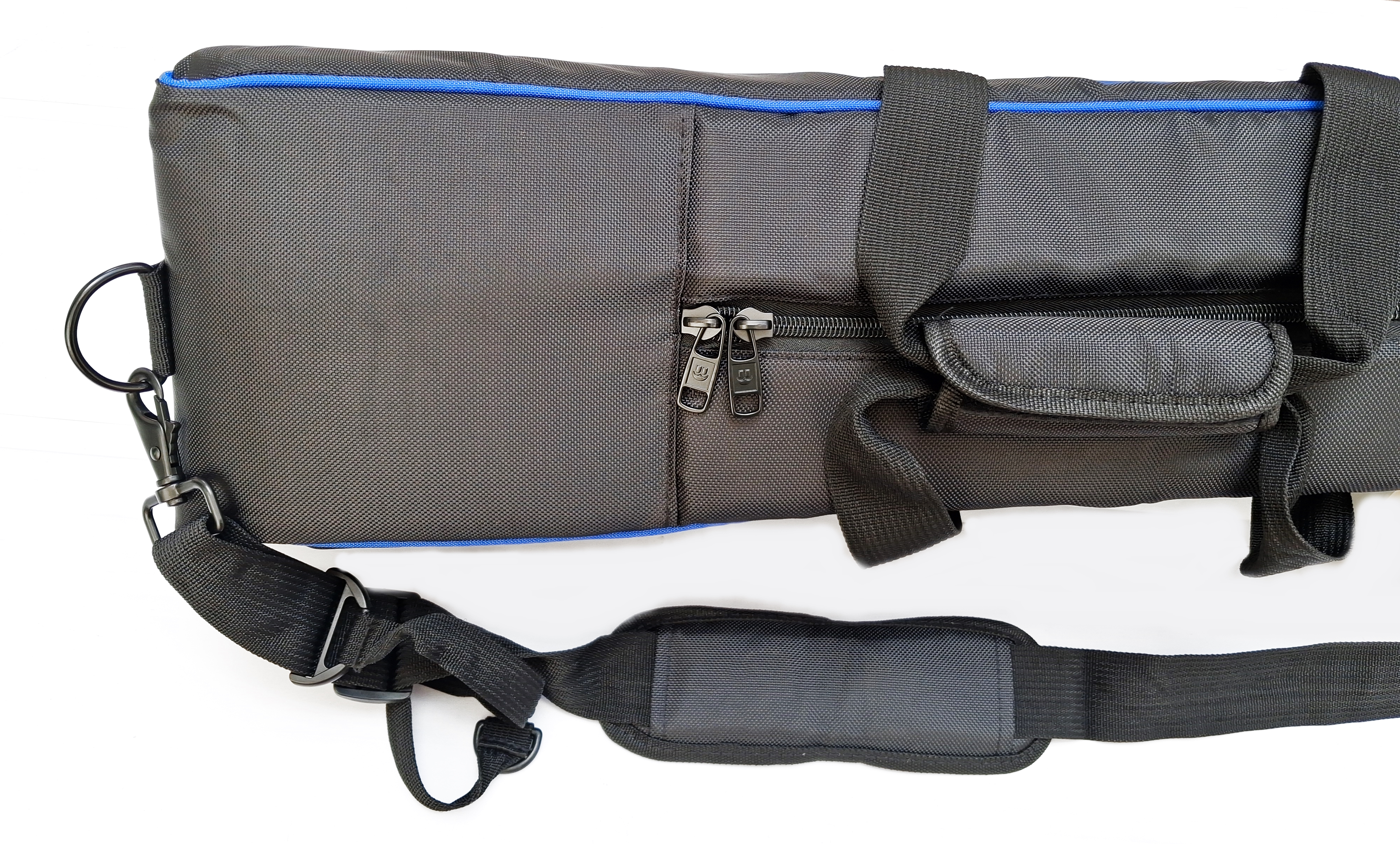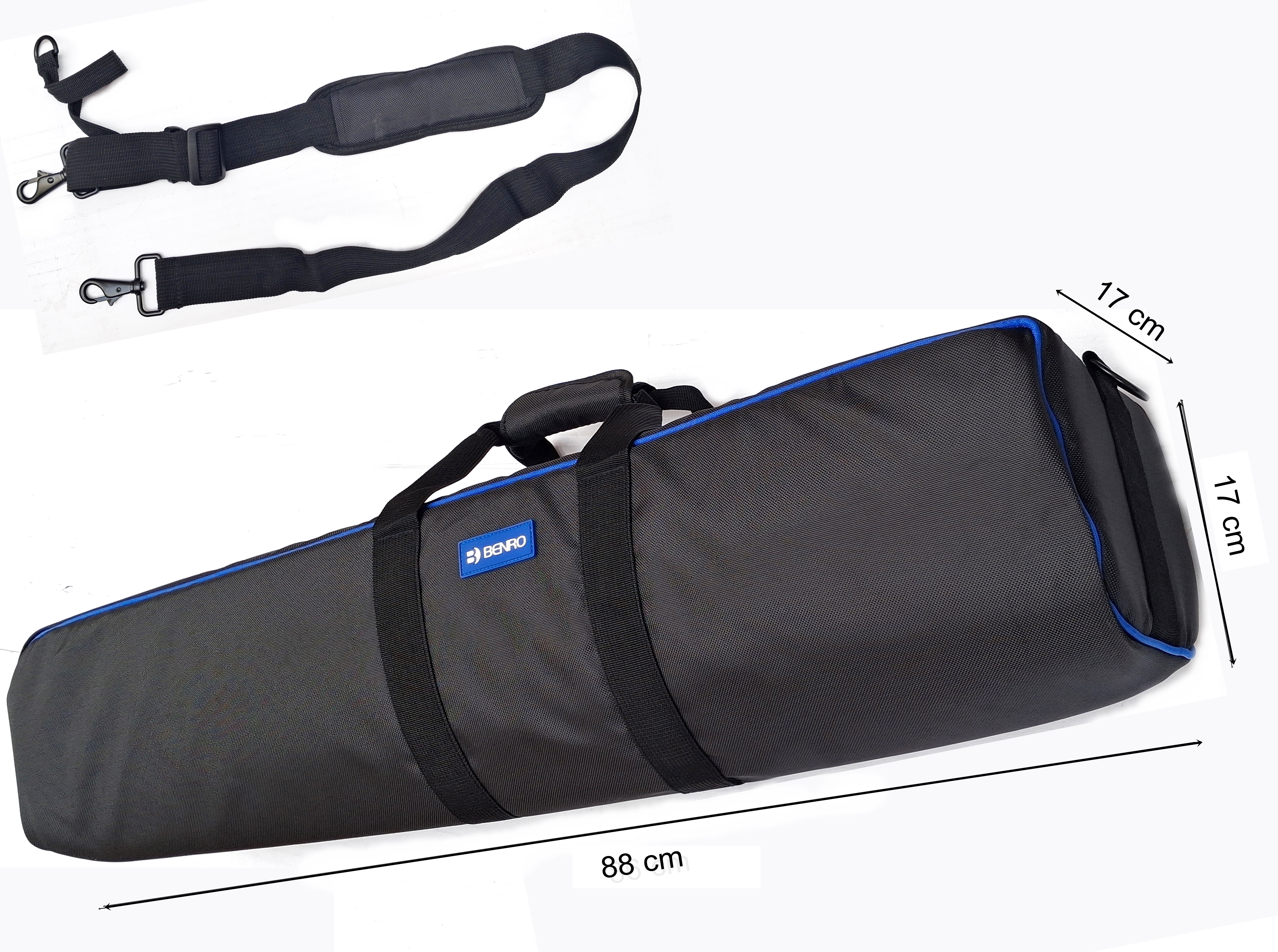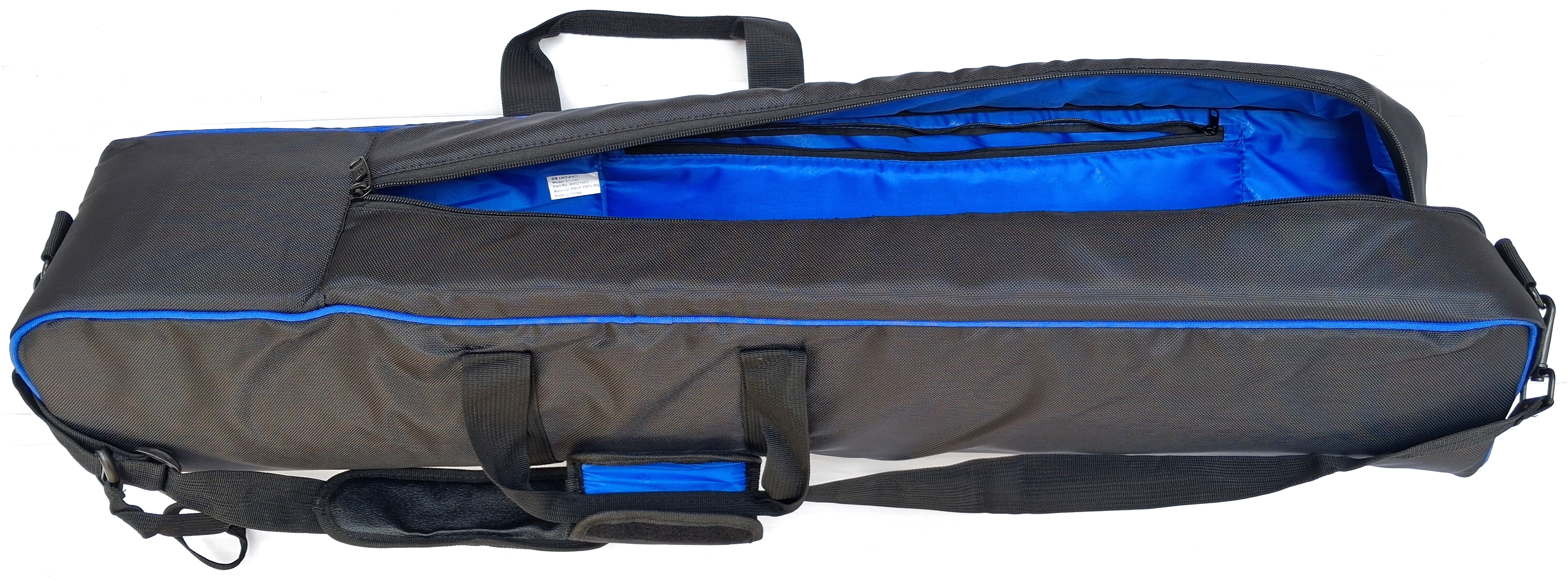 Bolso interno com zíper e pequena alça para prender a manopla do tripé durante o transporte |