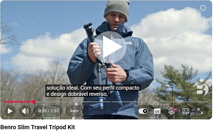 Tripé ultra-compacto, leve,  ideal para viagens.