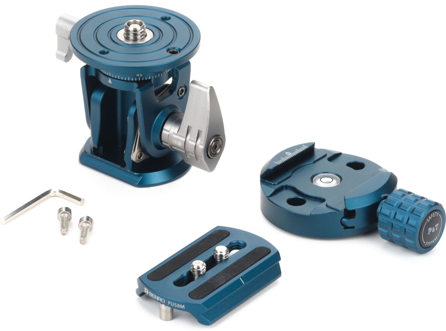 com dois parafusos de 1/4" para fixação segura na base de lentes